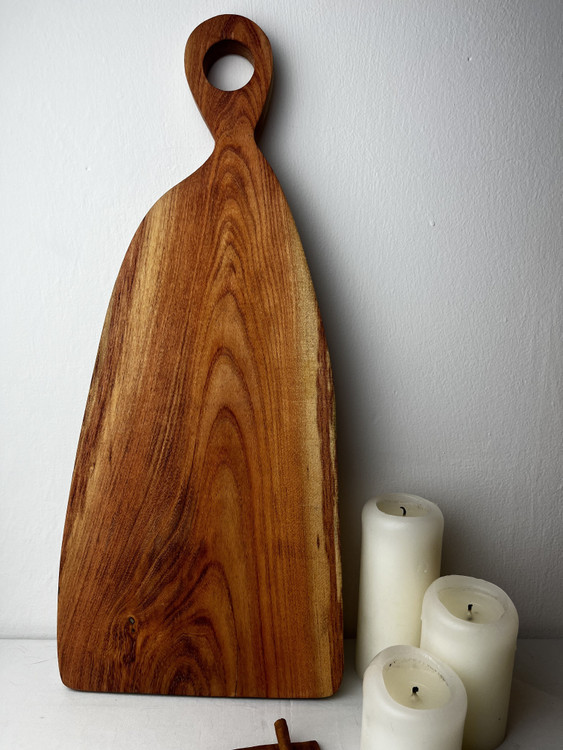سطح صیقلی، رنگ گرم چوب، و بافت طبیعی آن، حس گرما و اصالت را به آشپزخانه یا میز پذیرایی شما میآورد. این محصول کاملاً دستساز بوده و هر قطعه، طرح و الگوی منحصربهفرد خود را دارد.