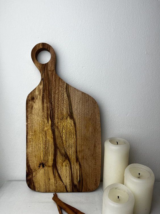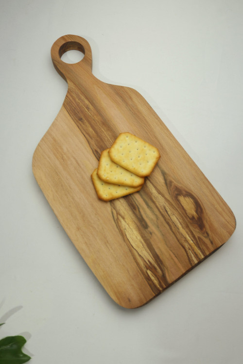سطح صیقلی، رنگ گرم چوب، و بافت طبیعی آن، حس گرما و اصالت را به آشپزخانه یا میز پذیرایی شما میآورد. این محصول کاملاً دستساز بوده و هر قطعه، طرح و الگوی منحصربهفرد خود را دارد.