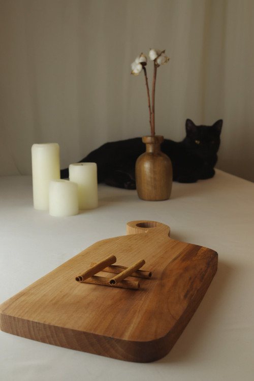 سطح صیقلی، رنگ گرم چوب، و بافت طبیعی آن، حس گرما و اصالت را به آشپزخانه یا میز پذیرایی شما میآورد. این محصول کاملاً دستساز بوده و هر قطعه، طرح و الگوی منحصربهفرد خود را دارد.